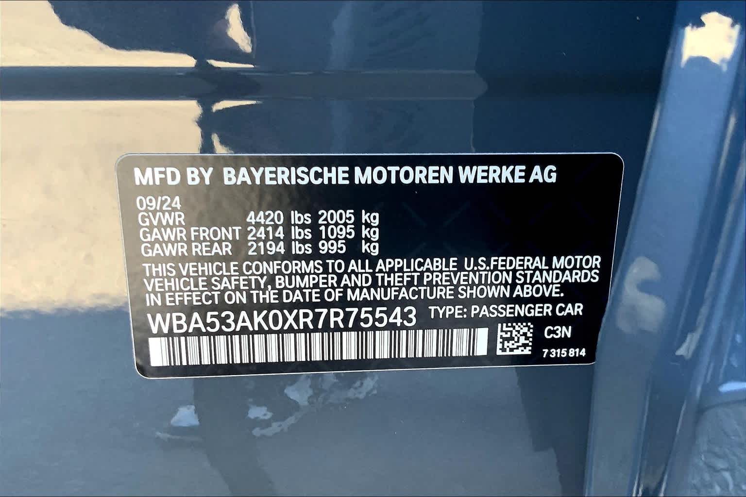 - VIN : WBA53AK0XR7R75543