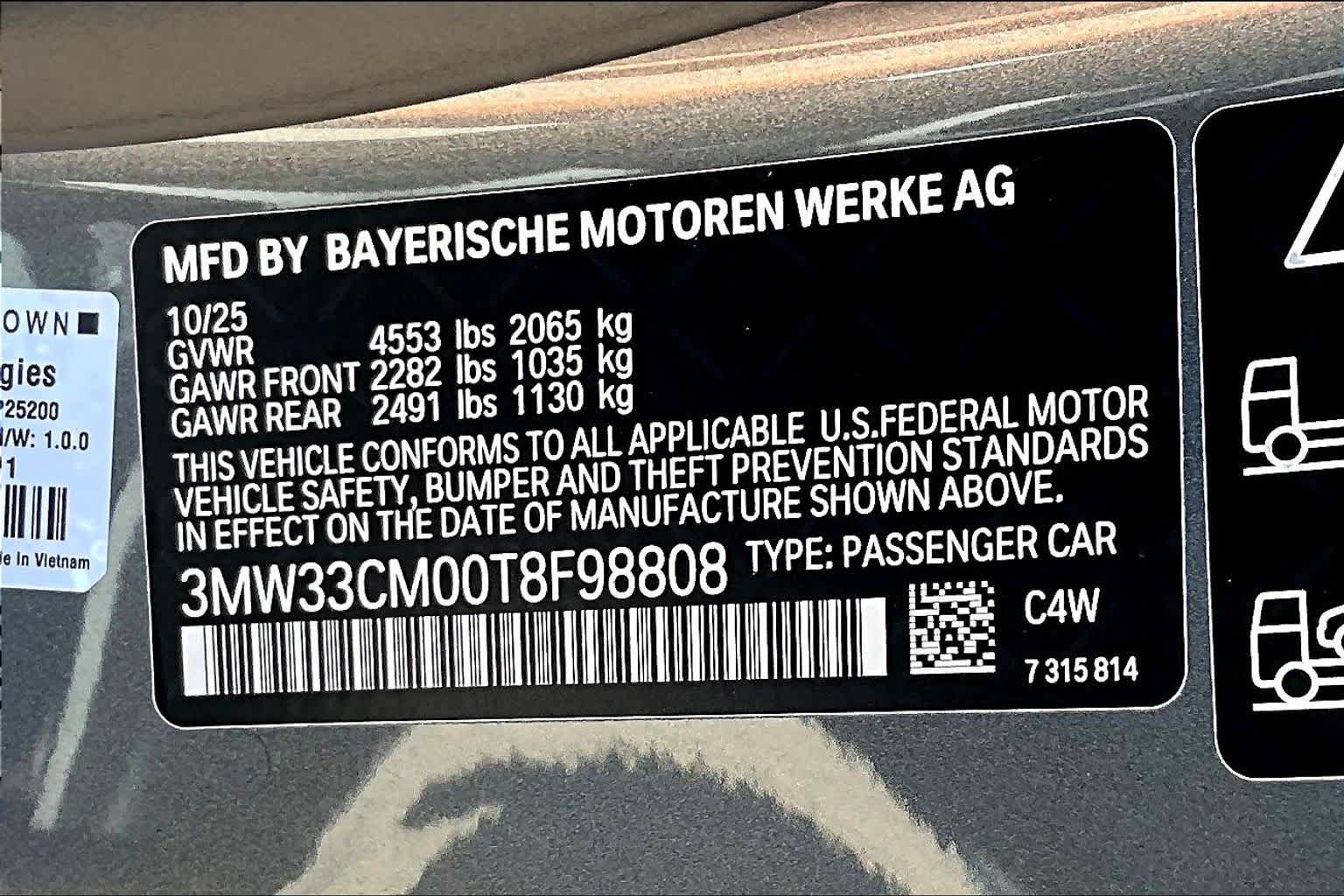 - VIN : 3MW33CM00T8F98808