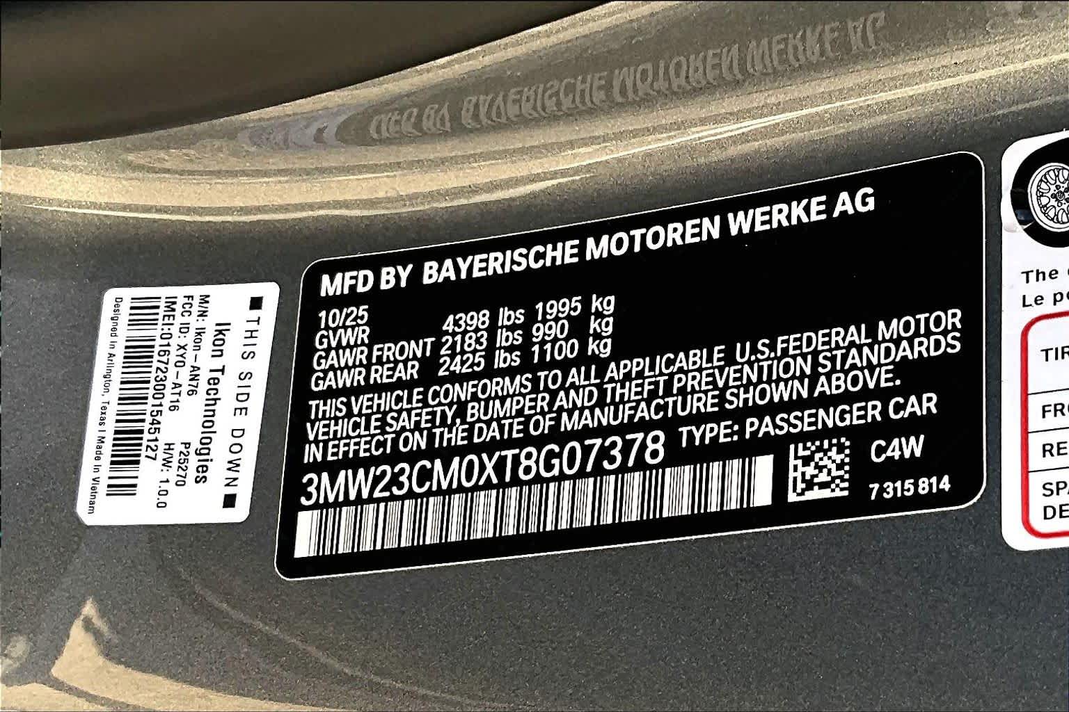 - VIN : 3MW23CM0XT8G07378