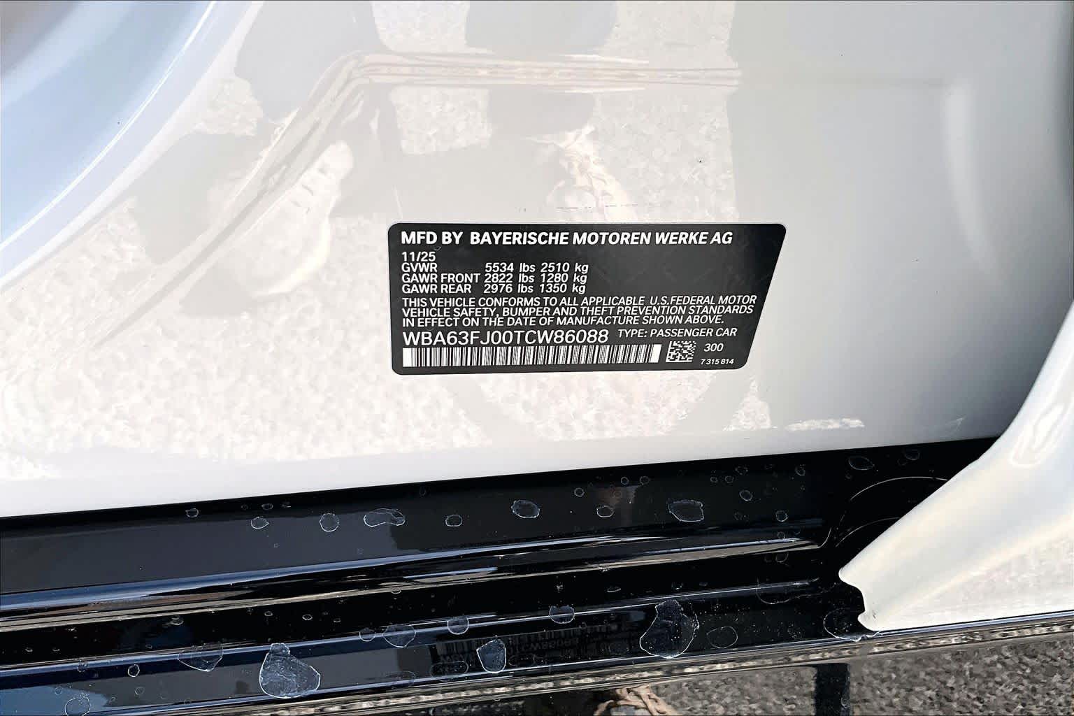 - VIN : WBA23FB07TFV95427