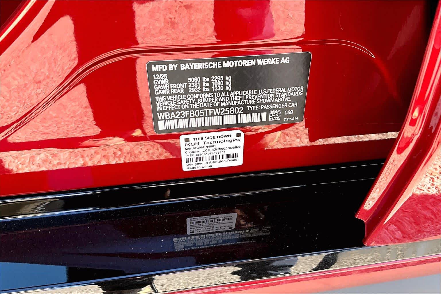 - VIN : WBA23FB05TFW25802
