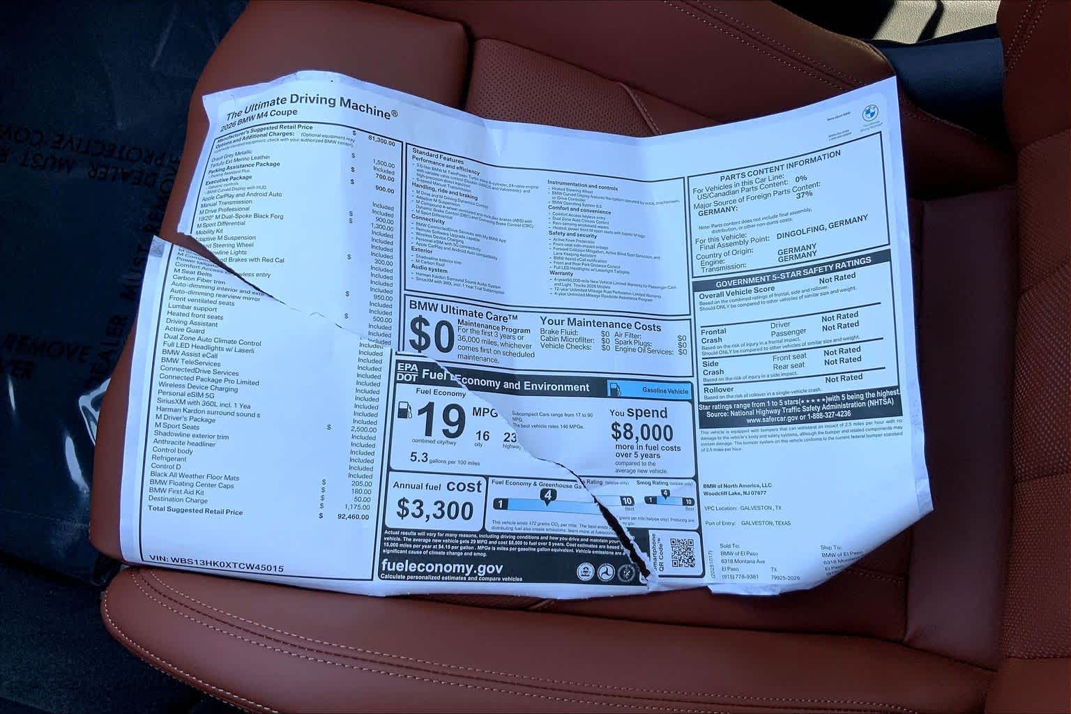 WHEELS: 19 X 9.5 FR/20 X 10.5 RR FORGED BLACK Style 826M, M dual-spoke, Tires: 275/35R19 Fr & 285/30R20 Rr High Performance, Staggered, M DRIVE PROFESSIONAL, EXECUTIVE PACKAGE Live Cockpit Pro w/Navigation, Galvanic Controls, PARKING ASSISTANCE PACKAGE Parking View w/3D View (Surround View), Parking Assistant Plus, FRONT VENTILATED SEATS.