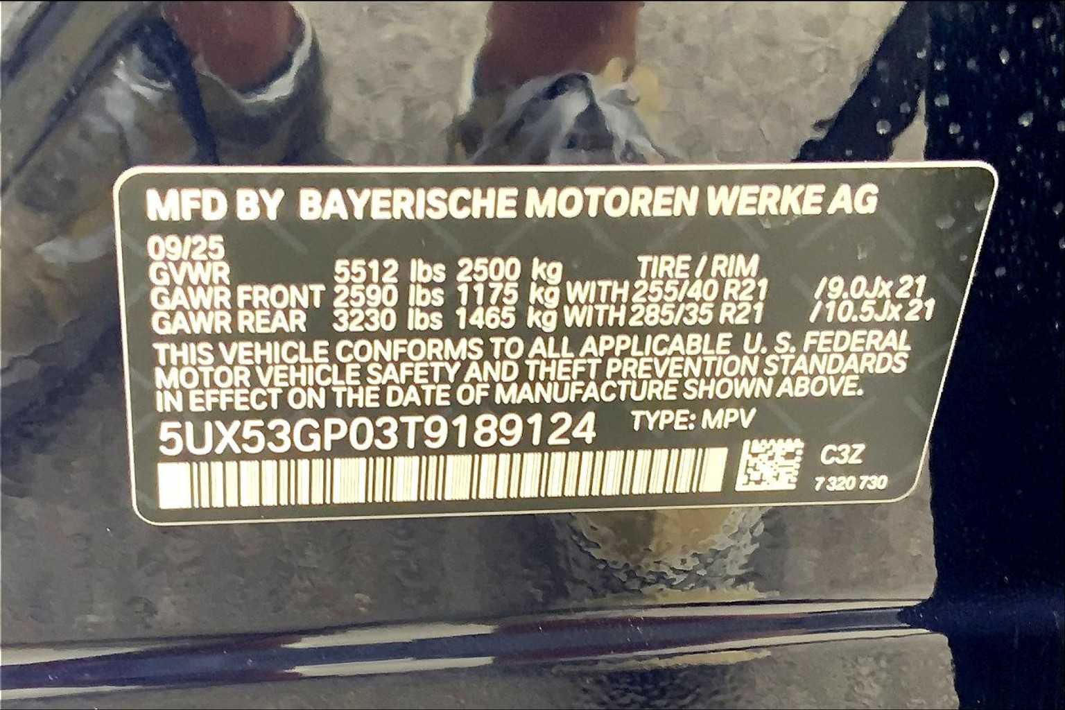 - VIN : 5UX53GP03T9189124