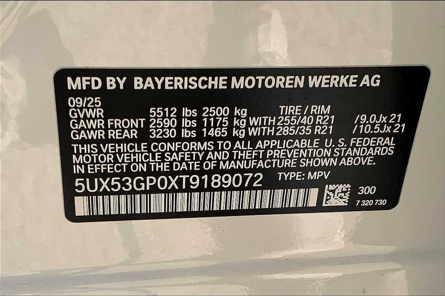 - VIN : 5UX53GP0XT9189072