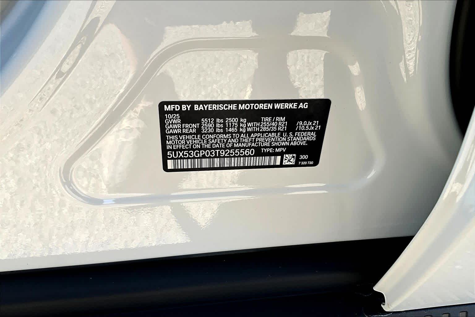- VIN : 5UX53GP03T9255560