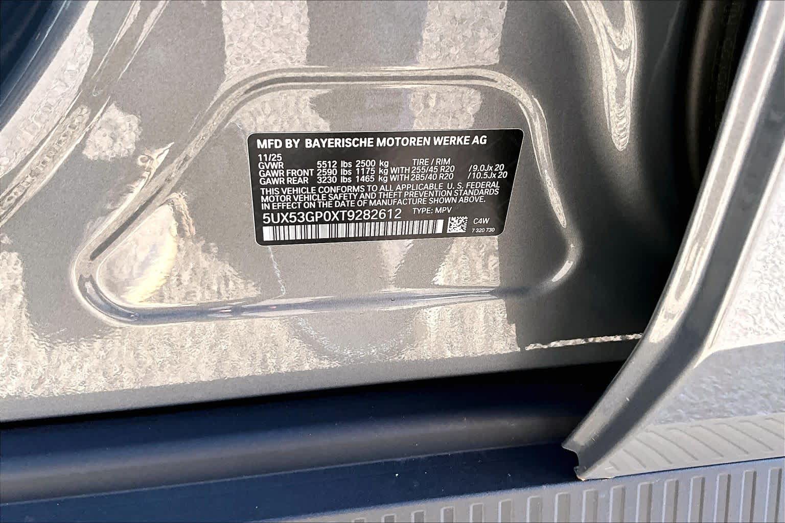 - VIN : 5UX53GP0XT9282612