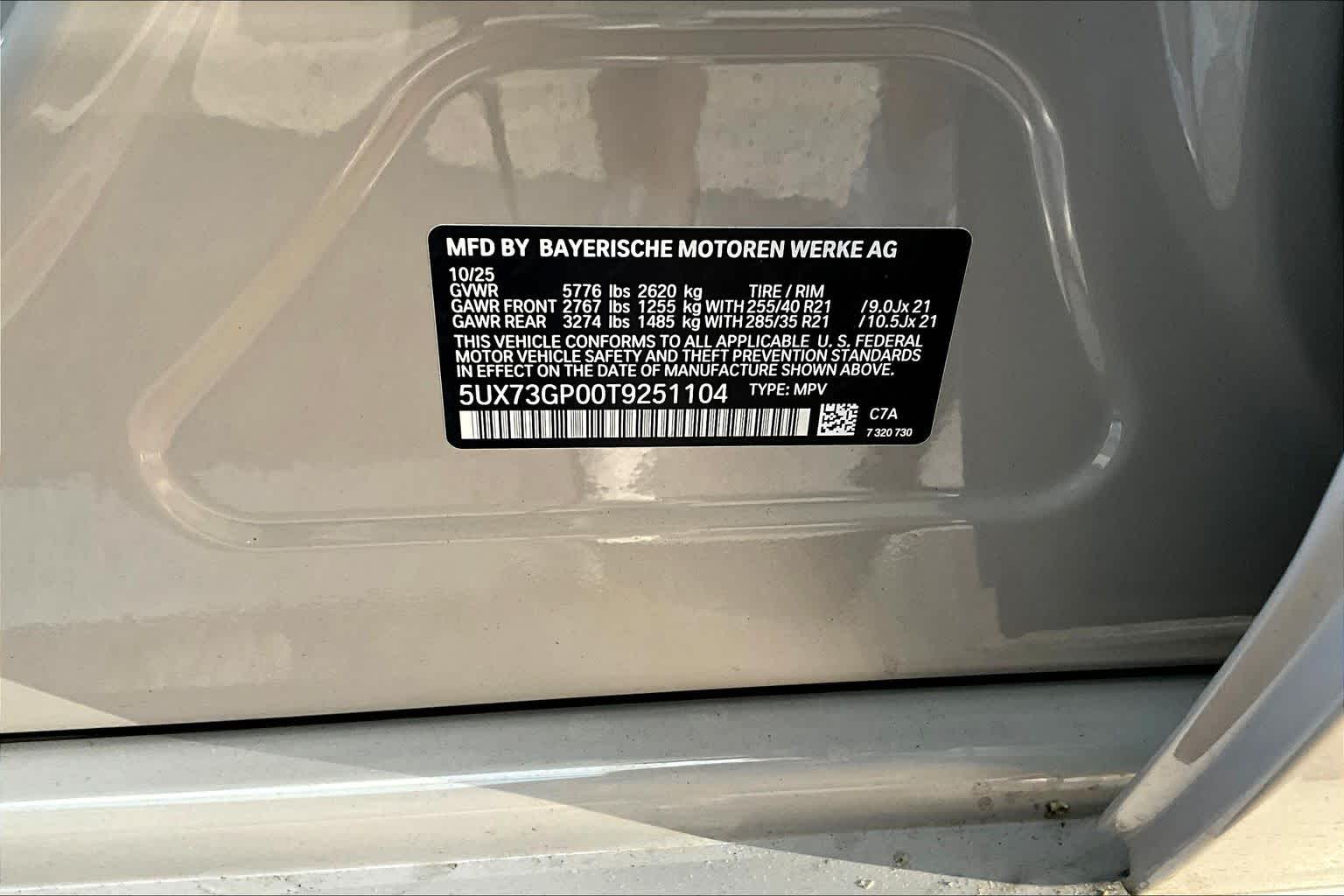 - VIN : 5UX73GP00T9251104