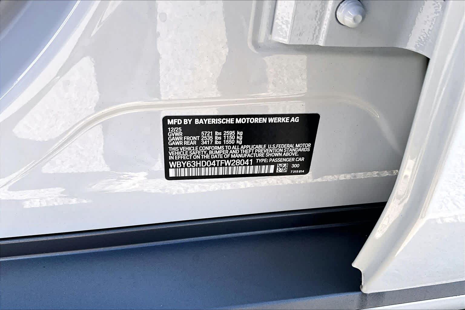 - VIN : WBY63HD04TFW28041