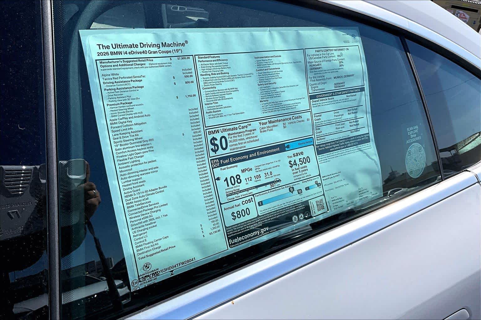 PREMIUM PACKAGE BMW Curved Display w/HUD, Heated Steering Wheel, harman/kardon Surround Sound System, Iconic Sounds Electric, PARKING ASSISTANCE PACKAGE Drive Recorder, Parking View w/3D View (Surround View), Active Park Distance Control w/Side Protection, Parking Assistant Plus, WHEELS: 19 X 8.5 FR & 19 X 9.0 RR BICOLOR Gunmetal grey, Style 855, Tires: 245/40R19 Fr & 255/40R19 Rr All-Season, Staggered, DRIVING ASSISTANCE PACKAGE Distance Control (ACC), distance control to cruise control system w/automatic regulation of speed and distance in stop-and-go traffic and in congestion, down to a complete standstill, Automatic pullaway after short stops (< 3s).