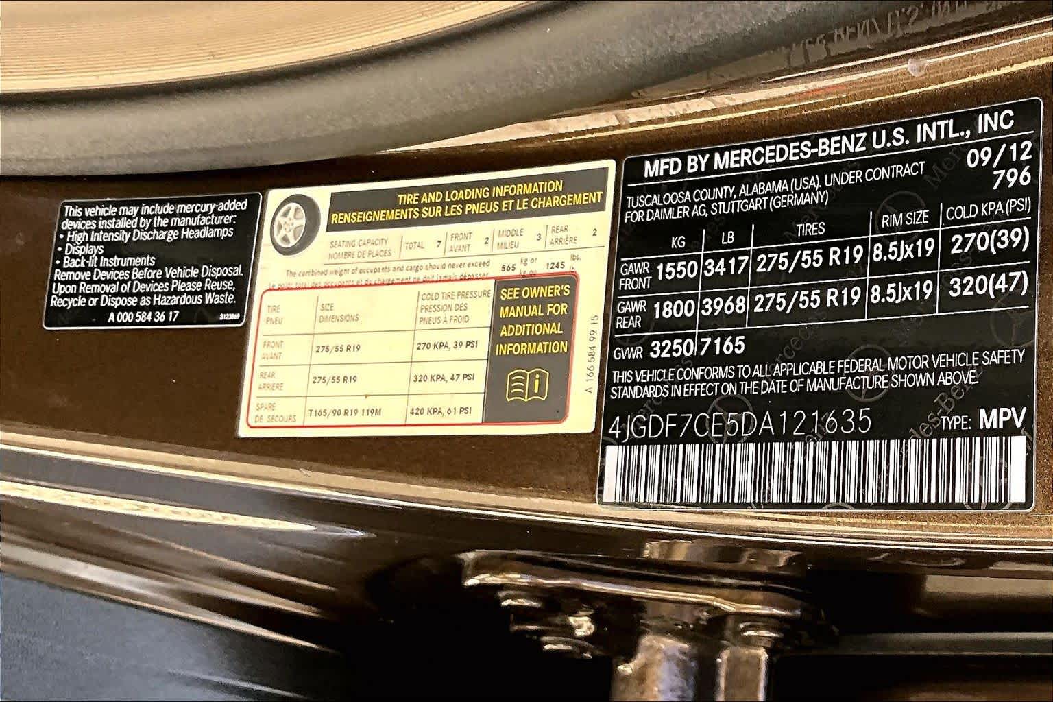 - VIN : 4JGDF7CE5DA121635