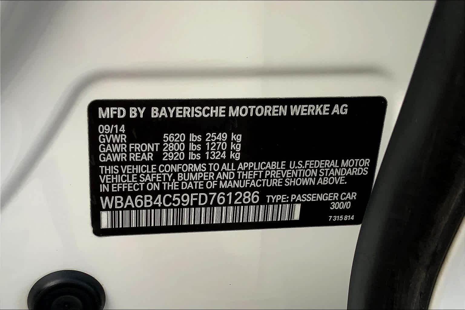 - VIN : WBA6B4C59FD761286