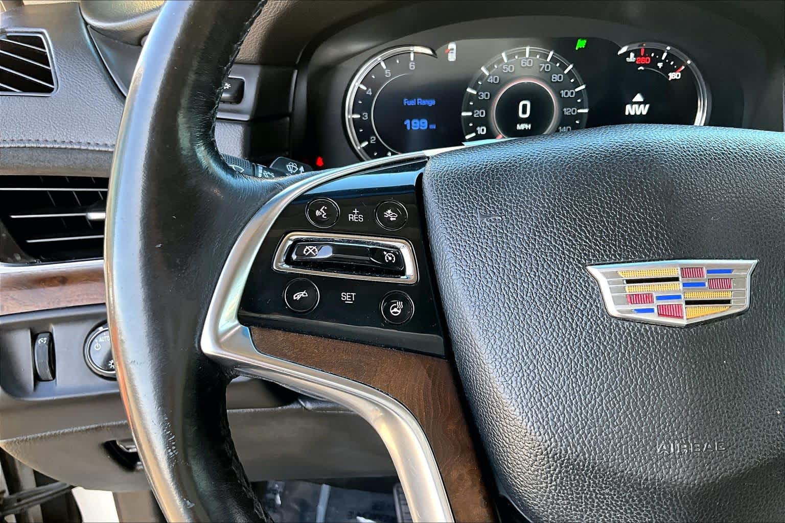 ASSIST STEPS, POWER-RETRACTABLE, RUNNING SIDE BOARD with LED lighting, CADILLAC CUE INFORMATION AND MEDIA CONTROL SYSTEM WITH EMBEDDED NAVIGATION 8 diagonal color information display featuring touch response, haptic feedback, gesture recognition, Natural Voice Recognition and Phone Integration for Apple CarPlay capability for compatible phone. Five USB ports, including one in the articulating storage door/bin and auxiliary audio port (STD), ENGINE, 6.2L V8 WITH ACTIVE FUEL MANAGEMENT Spark Ignition Direct Injection (SIDI) and Variable Valve Timing (VVT), includes aluminum block construction (420 hp [313.2 kW] @ 5600 rpm, 460 lb-ft of torque [621 N-m] @ 4100 rpm) (STD), TRANSMISSION, 8-SPEED AUTOMATIC, 8L90 (STD).
