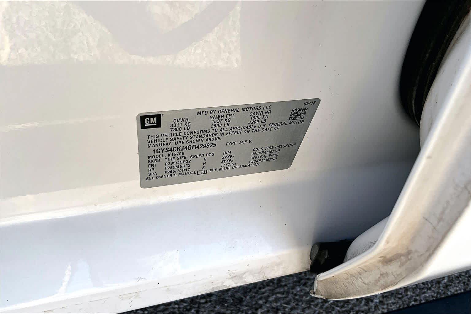 - VIN : 1GYS4CKJ4GR429825