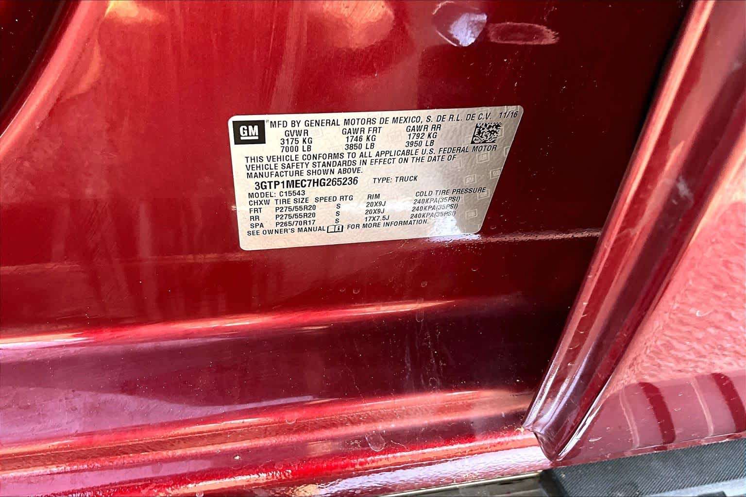 - VIN : 3GTP1MEC7HG265236