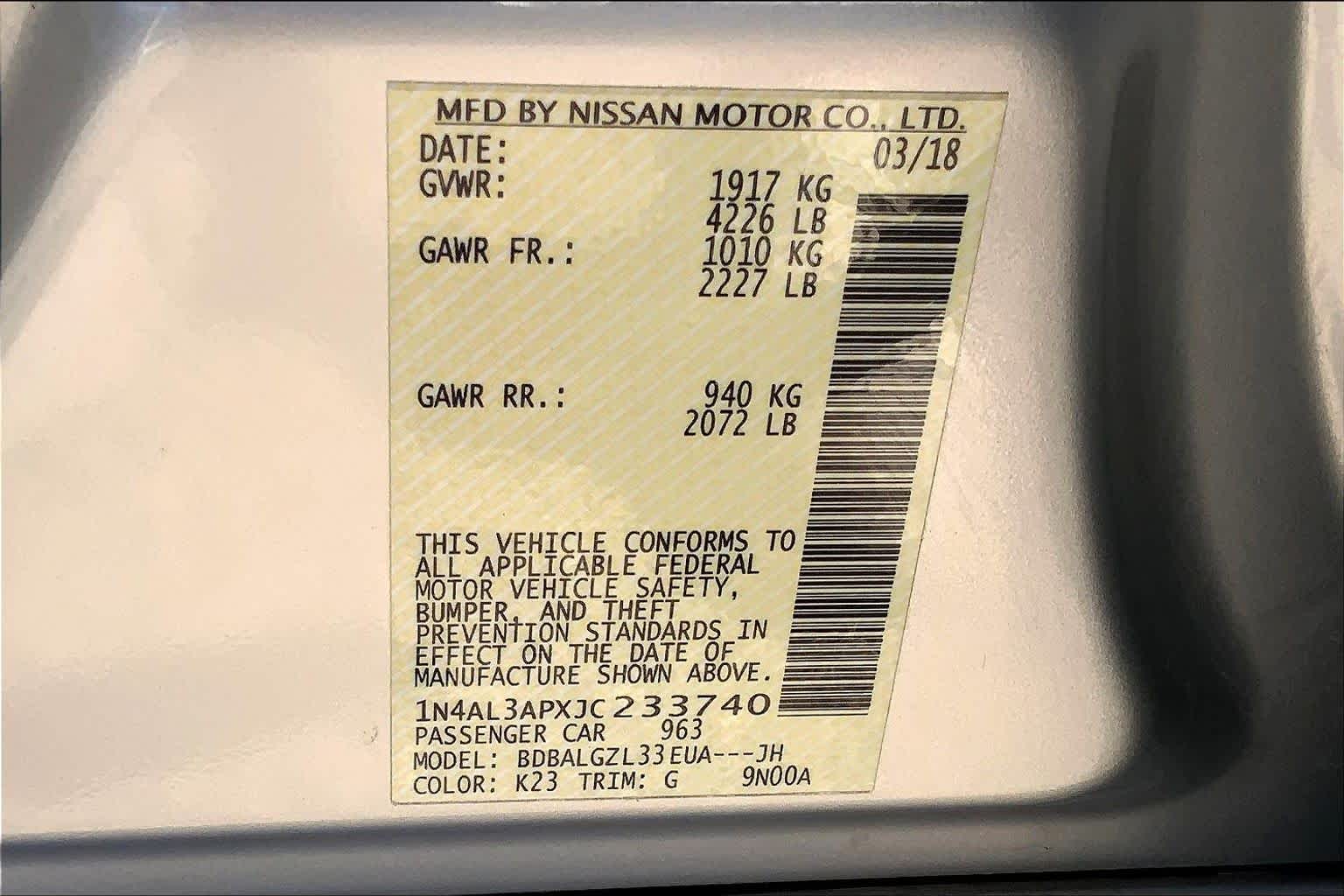 - VIN : 1N4AL3APXJC233740