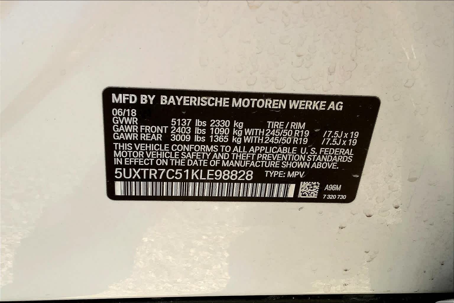 - VIN : 5UXTR7C51KLE98828