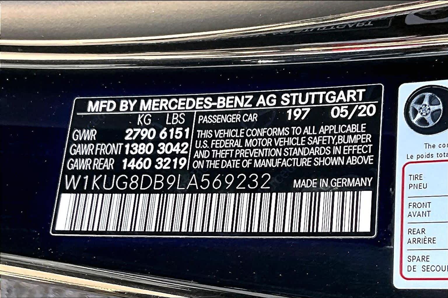 - VIN : W1KUG8DB9LA569232