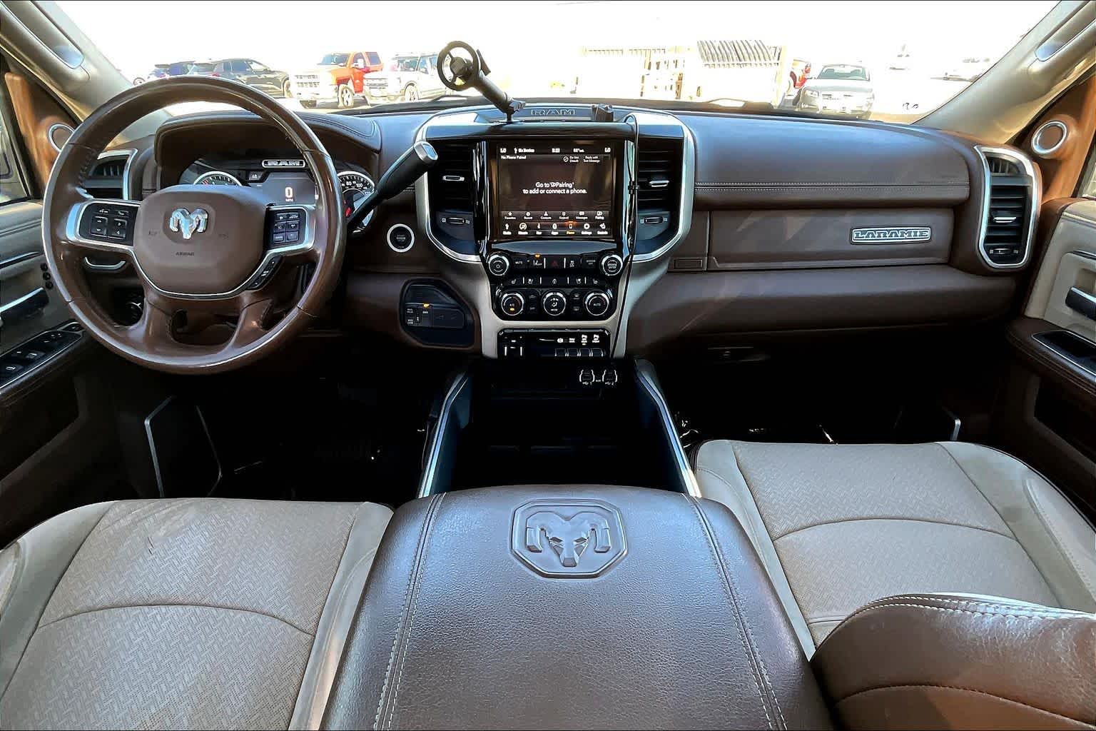 ENGINE: 6.7L I6 CUMMINS TURBO DIESEL Selective Catalytic Reduction (Urea), Dual 730 Amp Maintenance Free Batteries, Cummins Turbo Diesel Badge, Heavy Duty Engine Cooling, Supplemental Heater, 220 Amp Alternator, Tow Hooks, Diesel Exhaust Brake, Front Bumper Sight Shields, Capless Fuel Fill w/o Discriminator, LARAMIE LEVEL 2 EQUIPMENT GROUP Blind Spot & Cross Path Detection (DISC), Power Chrome Tow Mirrors w/Convex Spotter & Memory, Mirror-Mounted Aux Reverse Lamps, Exterior Mirrors w/Memory, Power Adjustable Convex Aux Mirrors, Rain Sensitive Windshield Wipers, Power Adjustable Pedals w/Memory, Radio: Uconnect 4C Nav w/8.4 Display, Ventilated Front Seats, Remote Tailgate Release, 17 Speaker harman/kardon Premium Sound, Auto High Beam Headlamp Control, Heated Second Row Seats, Foam Bottle Insert (Door Trim Panel), 2nd Row In Floor Storage Bins, Radio/Driver Seat/Mirrors/Pedals Memory, WHEELS: 20 X 8.0 POLISHED ALUMINUM Tires: LT285/60R20E OWL On/Off Road, Center Hub, SAFETY GROUP Adaptive Cruise Control w/Stop, Digital Rearview Mirror, Adaptive Steering System, Full Speed Forward Collision Warning Plus, Lane Keep Assist, POWER SUNROOF, TOWING TECHNOLOGY GROUP CTR Stop Lamp w/Cargo View Camera, Surround View Camera System, Blind Spot & Cross Path Detection (DISC), Power Chrome Tow Mirrors w/Convex Spotter & Memory, Mirror-Mounted Aux Reverse Lamps, Exterior Mirrors w/Memory, Power Adjustable Convex Aux Mirrors, Trailer Reverse Guidance, RADIO: UCONNECT 4C NAV W/8.4 DISPLAY Off-Road Information Pages, SiriusXM Traffic Plus, Disassociated Touchscreen Display, HD Radio, For Details Visit DriveUconnect.com, 1-Year SiriusXM Guardian Trial, GPS Navigation, SiriusXM Travel Link, 4G LTE Wi-Fi Hot Spot, CHROME FLAT WHEEL-TO-WHEEL SIDE STEPS, TRI-FOLD TONNEAU COVER, LT FROST BEIGE/MOUNTAIN, LEATHER TRIMMED BUCKET SEATS Bucket Seats, High Back Seats, #1 Seat Foam Cushion, Folding Flat Load Floor Storage, Full Length Upgraded Floor Console, ANTI-SPIN DIFFERENTIAL REAR AXLE, TRANSMISSION: 6-SPEED AUTOMATIC (68RFE) Chrome Accent Shift Control.