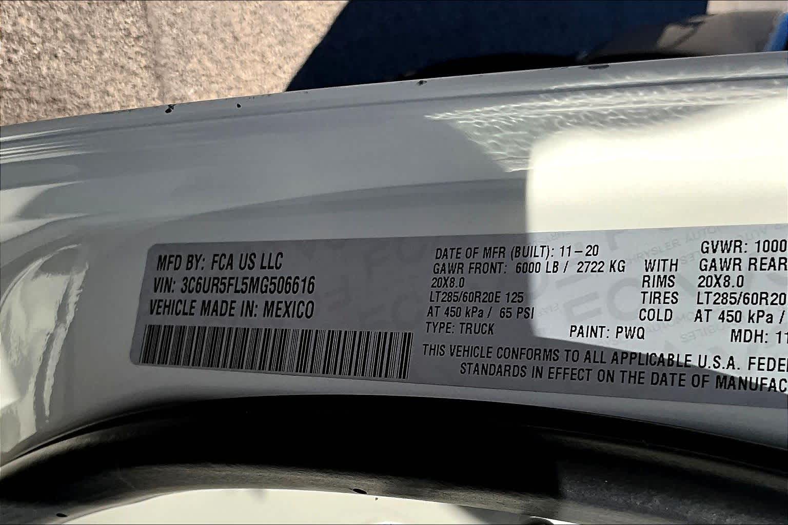 - VIN : 3C6UR5FL5MG506616