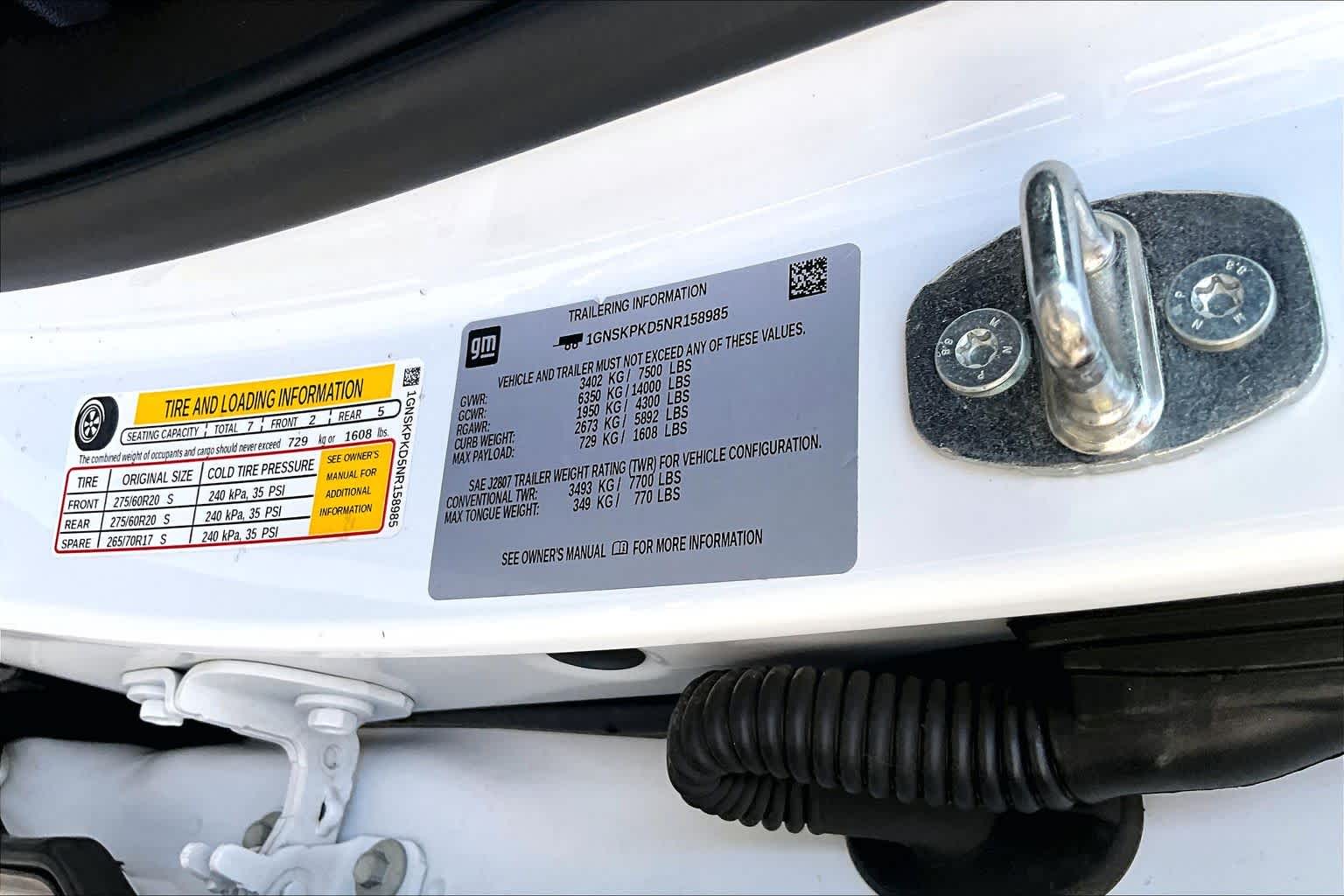 - VIN : 1GNSKPKD5NR158985