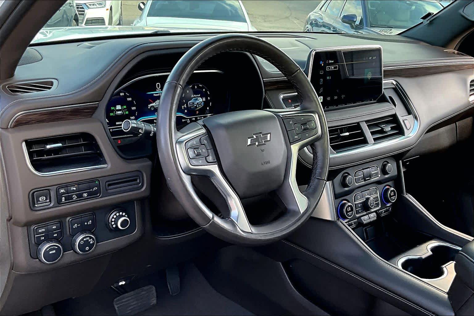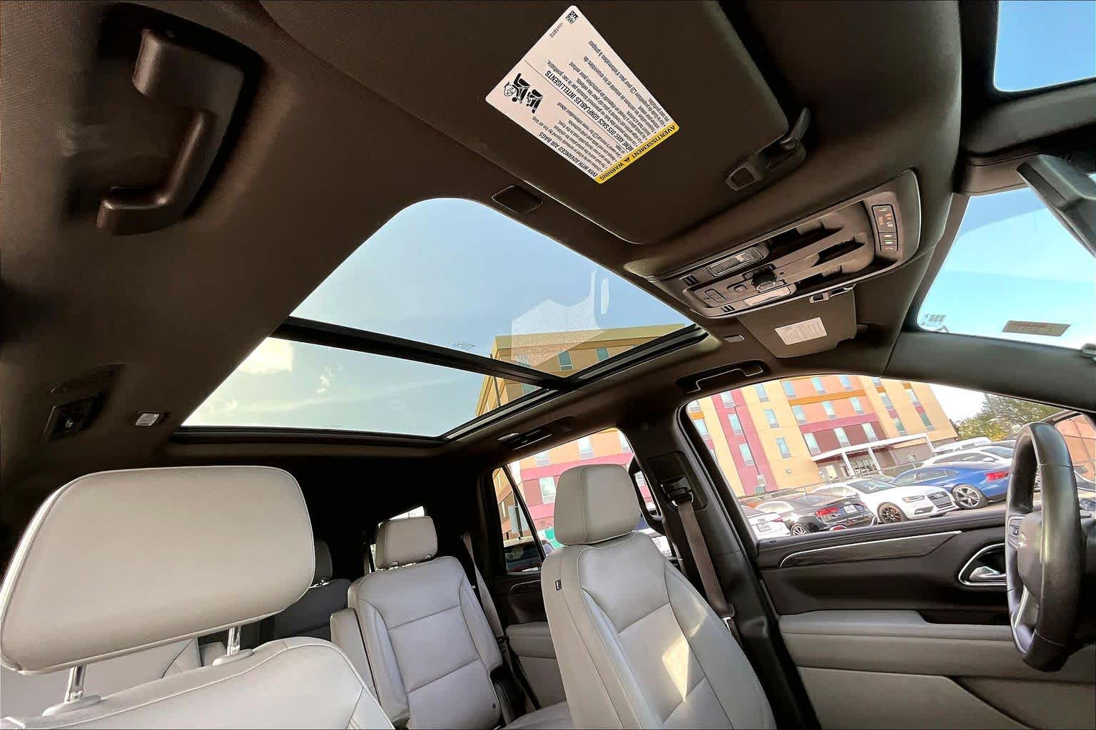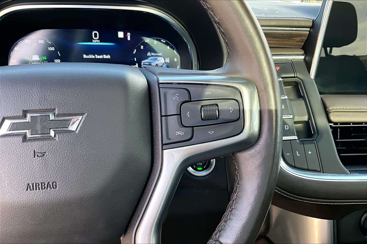 Z71 OFF-ROAD PACKAGE: includes (WPL) Luxury Package content, (NHT) Max Trailering Package and (Z6E) Off-Road Capability Package content, LUXURY PACKAGE includes (WPD) Driver Alert Package content, (UV2) HD Surround Vision, (UKK) Rear Pedestrian Alert, (A45) memory settings, (DXR) outside heated power-adjustable, power-folding, body-color mirrors with driver-side auto-dimming and integrated turn signal indicators, (N38) power tilt and telescopic steering column, (KI3) heated steering wheel, (KA6) second row outboard heated seats, (ATT) second row power 60/40 split-folding bench seats and (AS8) third row power 60/40 split-folding bench seats Vehicles built prior to December 6, 2021, include heated steering wheel. Certain vehicles built on or after December 6, 2021, will be forced to include (00G) Not Equipped with Heated Steering Wheel, which removes heated steering wheel. Vehicles built prior to March 14, 2022 and after, SUNROOF, POWER PANORAMIC, DUAL-PANE, TILT-SLIDING with express-open and close and power sunshade, SEATS, SECOND ROW BUCKET, POWER RELEASE, AUDIO SYSTEM, CHEVROLET INFOTAINMENT 3 PREMIUM SYSTEM WITH GOOGLE BUILT-IN 10.2 diagonal HD color touchscreen, includes multi-touch display, AM/FM stereo, Bluetooth streaming audio for music and most phones; featuring wireless Android Auto and Apple CarPlay capability for compatible phones, advanced voice recognition, in-vehicle apps, personalized profiles for infotainment and vehicle settings (STD), STEERING WHEEL, HEATED Vehicles built prior to December 6, 2021 and after March 27, 2022, include heated steering wheel. Certain vehicles built on or after December 6, 2021 through March 27, 2022, will be forced to include (00G) Not Equipped with Heated Steering Wheel, which removes heated steering wheel. See dealer for details or the window label for the features on a specific vehicle.), ENGINE, 5.3L ECOTEC3 V8 with Dynamic Fuel Management, Direct Injection and Variable Valve Timing, includes aluminum block construction (355 hp [265 kW] @ 5600 rpm, 383 lb-ft of torque [518 Nm] @ 4100 rpm) (STD), TRANSMISSION, 10-SPEED AUTOMATIC electronically controlled with overdrive, includes Traction Select System including tow/haul (STD), DRIVER ALERT PACKAGE includes (UKC) Lane Change Alert with Side Blind Zone Alert and (UFG) Rear Cross Traffic Alert.