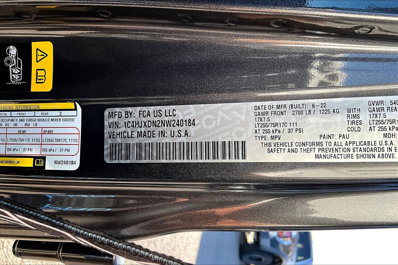 - VIN : 1C4HJXDN2NW240184