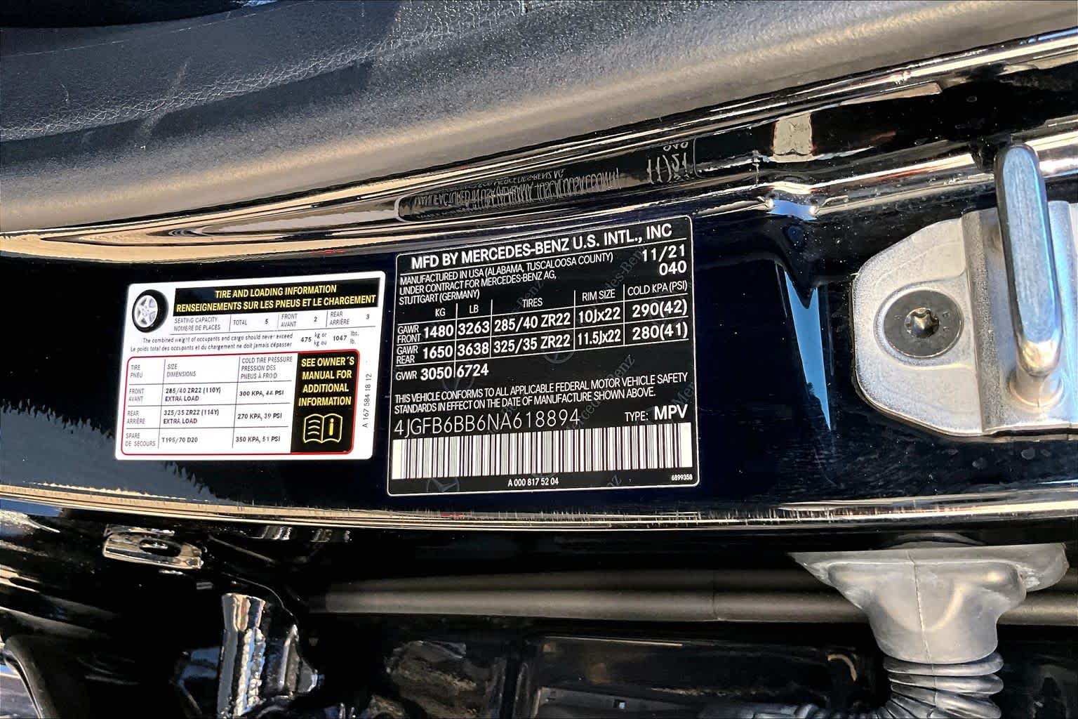 WHEELS: 22 AMG CROSS-SPOKE FORGED Tires: 285/40R22 Fr & 325/35R22 Rr, Collapsible Spare Tire, HEAD-UP DISPLAY, PANORAMA SUNROOF, EXTERIOR LIGHTING PACKAGE LED Intelligent Light System, 4-ZONE CLIMATE CONTROL, TRAILER HITCH, PARKING ASSISTANCE PACKAGE Surround View System.
