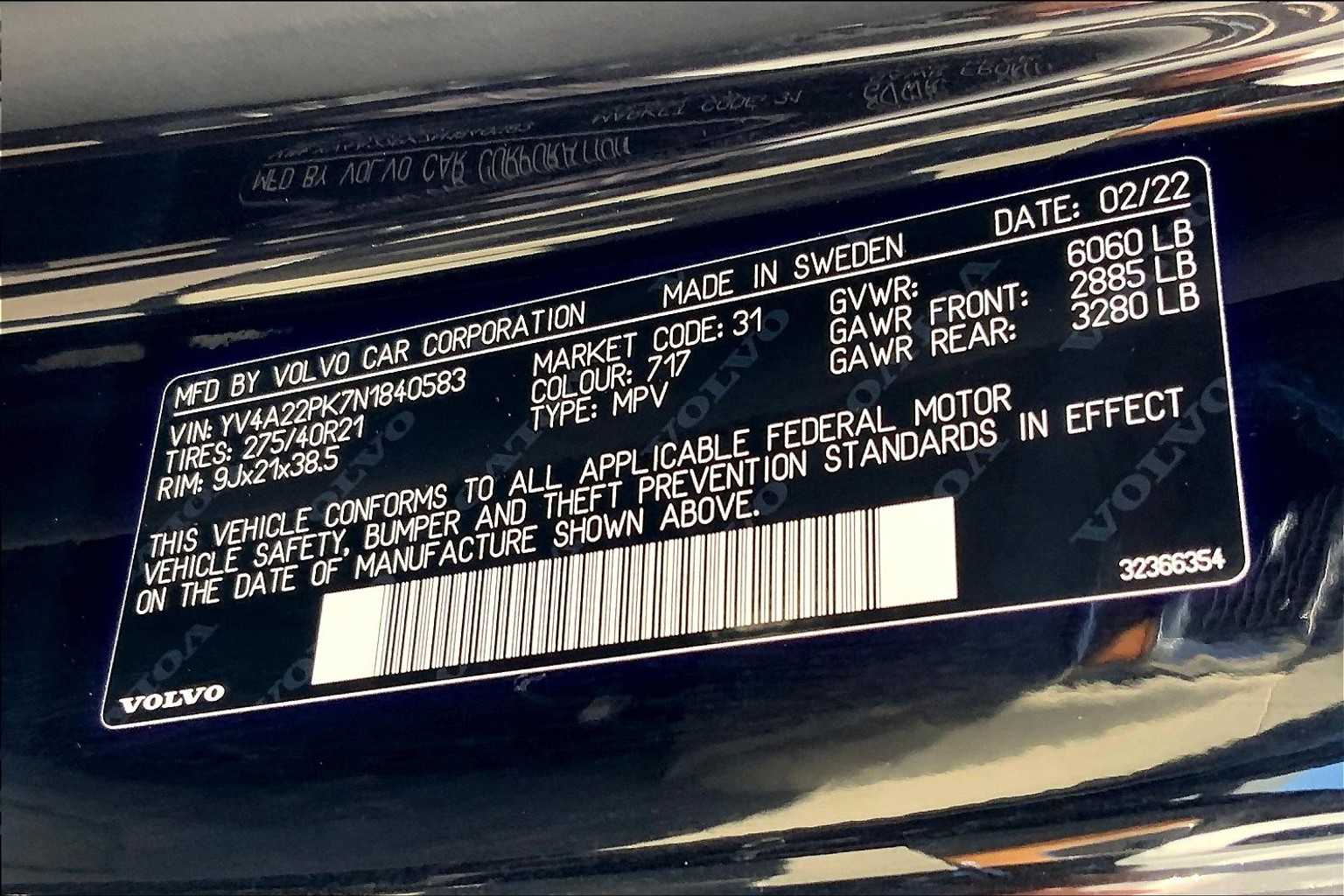 - VIN : YV4A22PK7N1840583