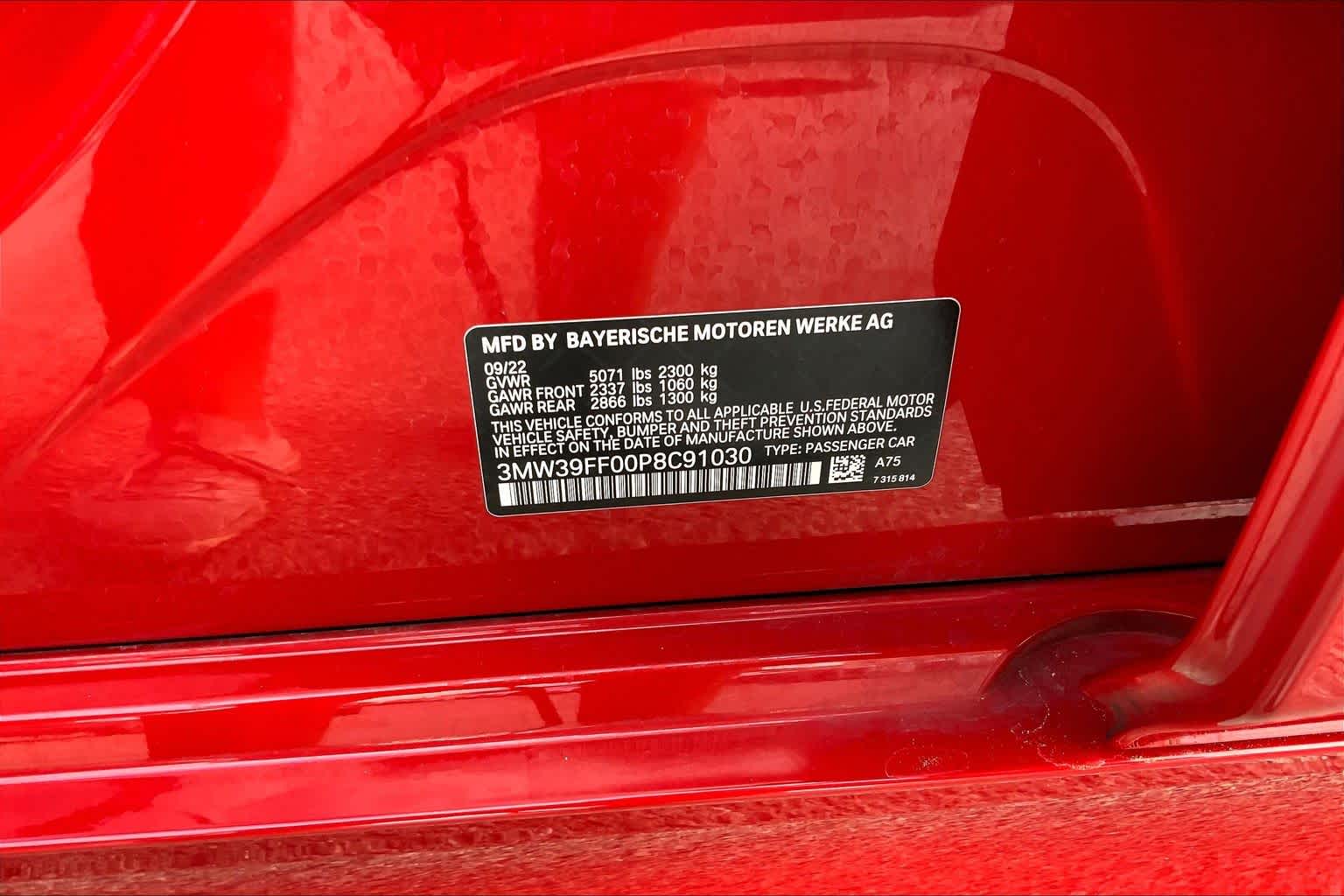 - VIN : 3MW39FF00P8C91030
