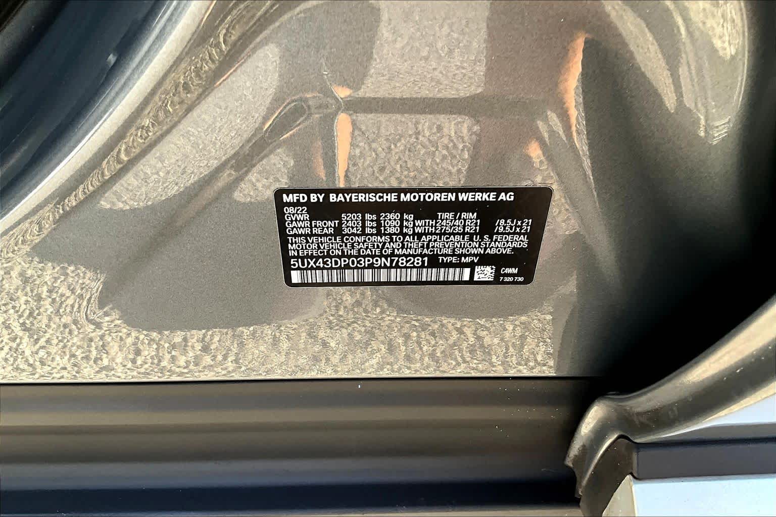 - VIN : 5UX43DP03P9N78281