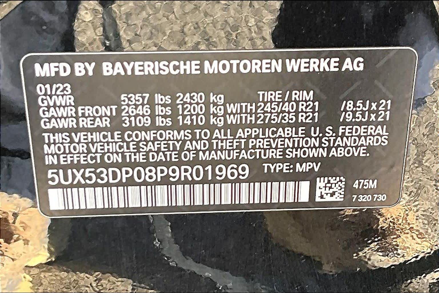 - VIN : 5UX53DP08P9R01969