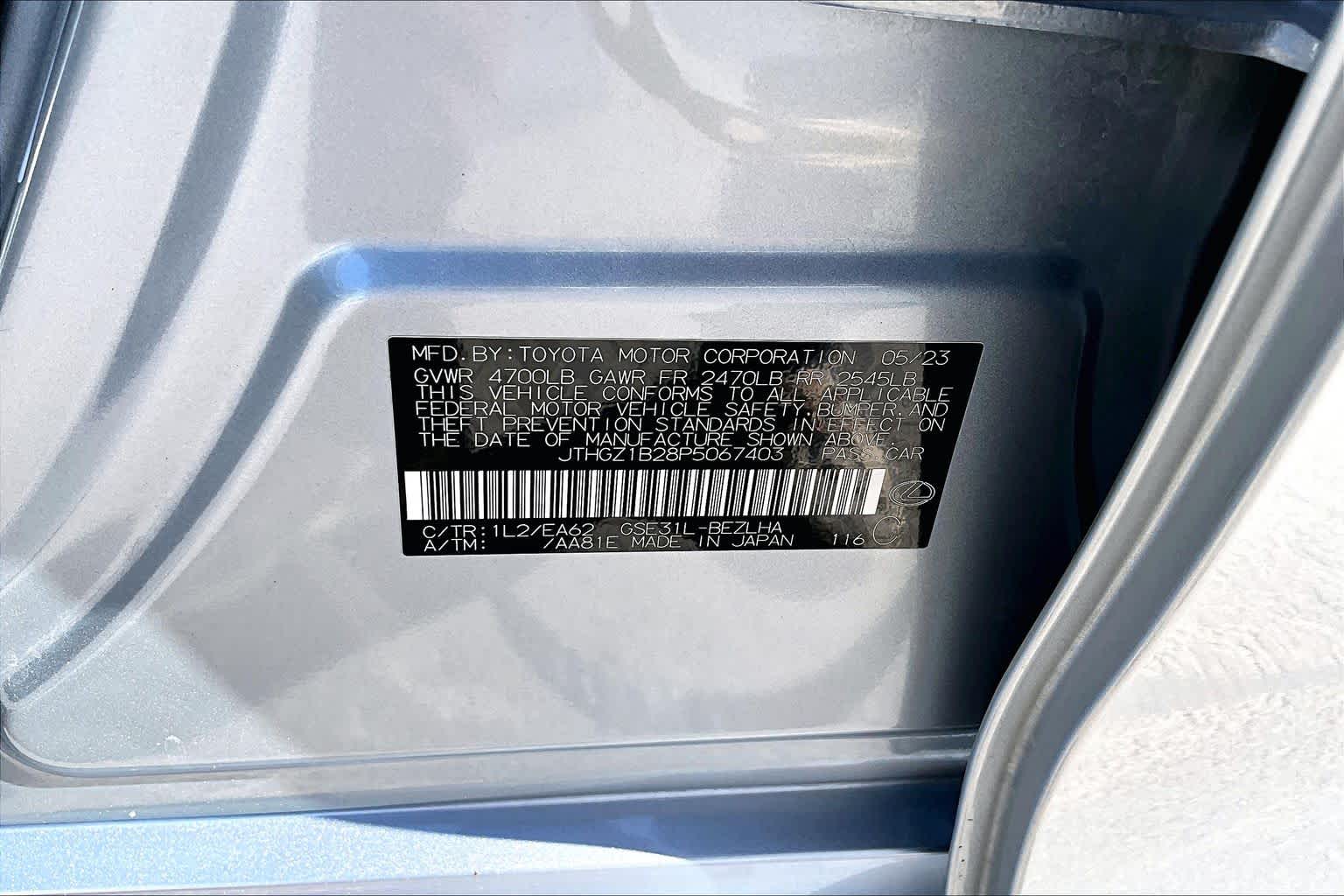 - VIN : JTHGZ1B28P5067403