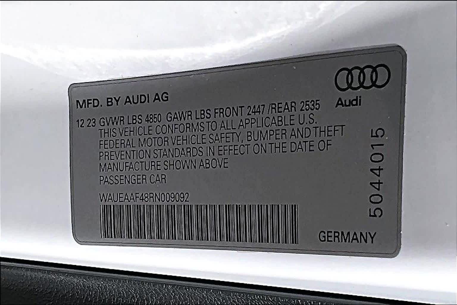- VIN : WAUEAAF48RN009092
