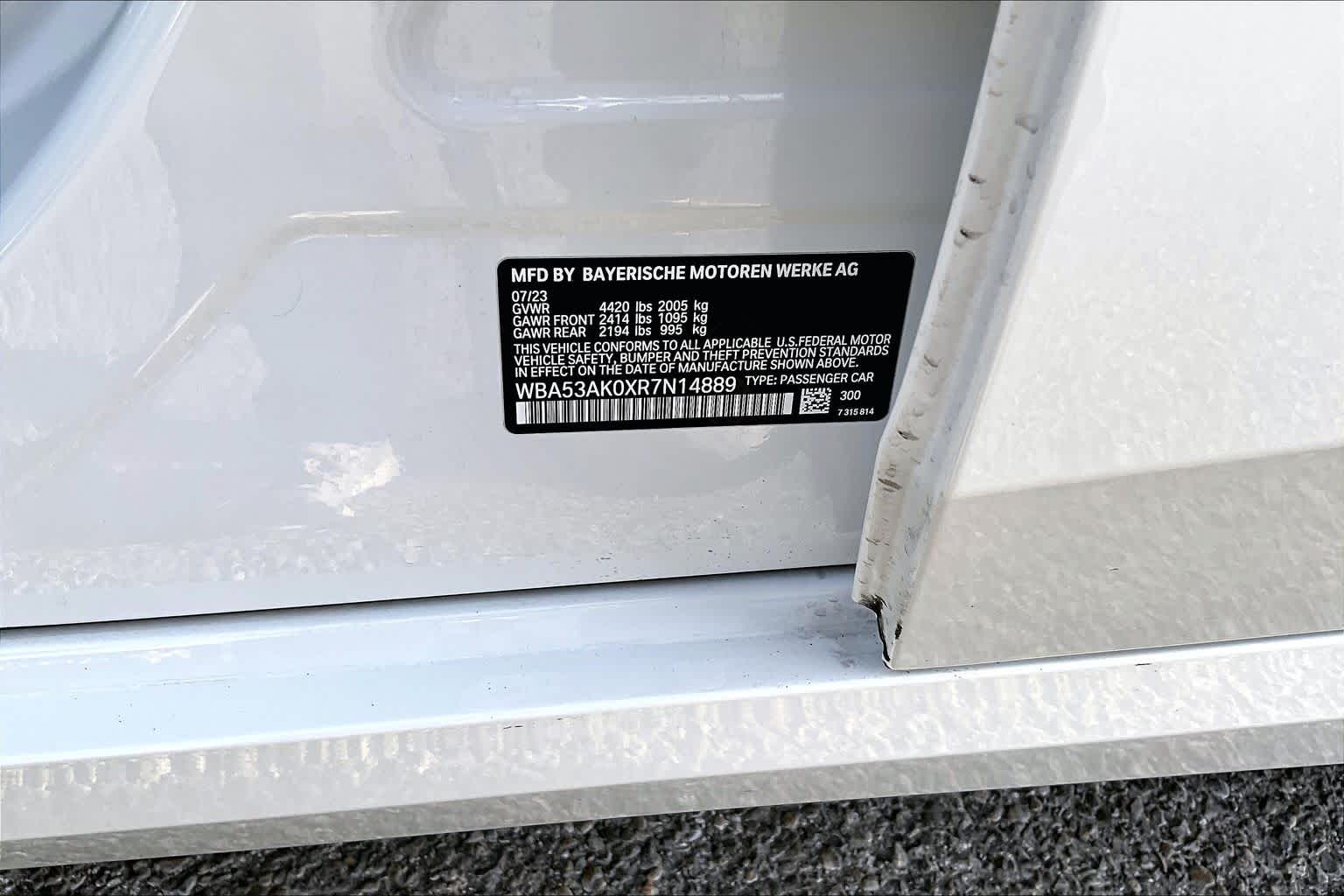 - VIN : WBA53AK0XR7N14889