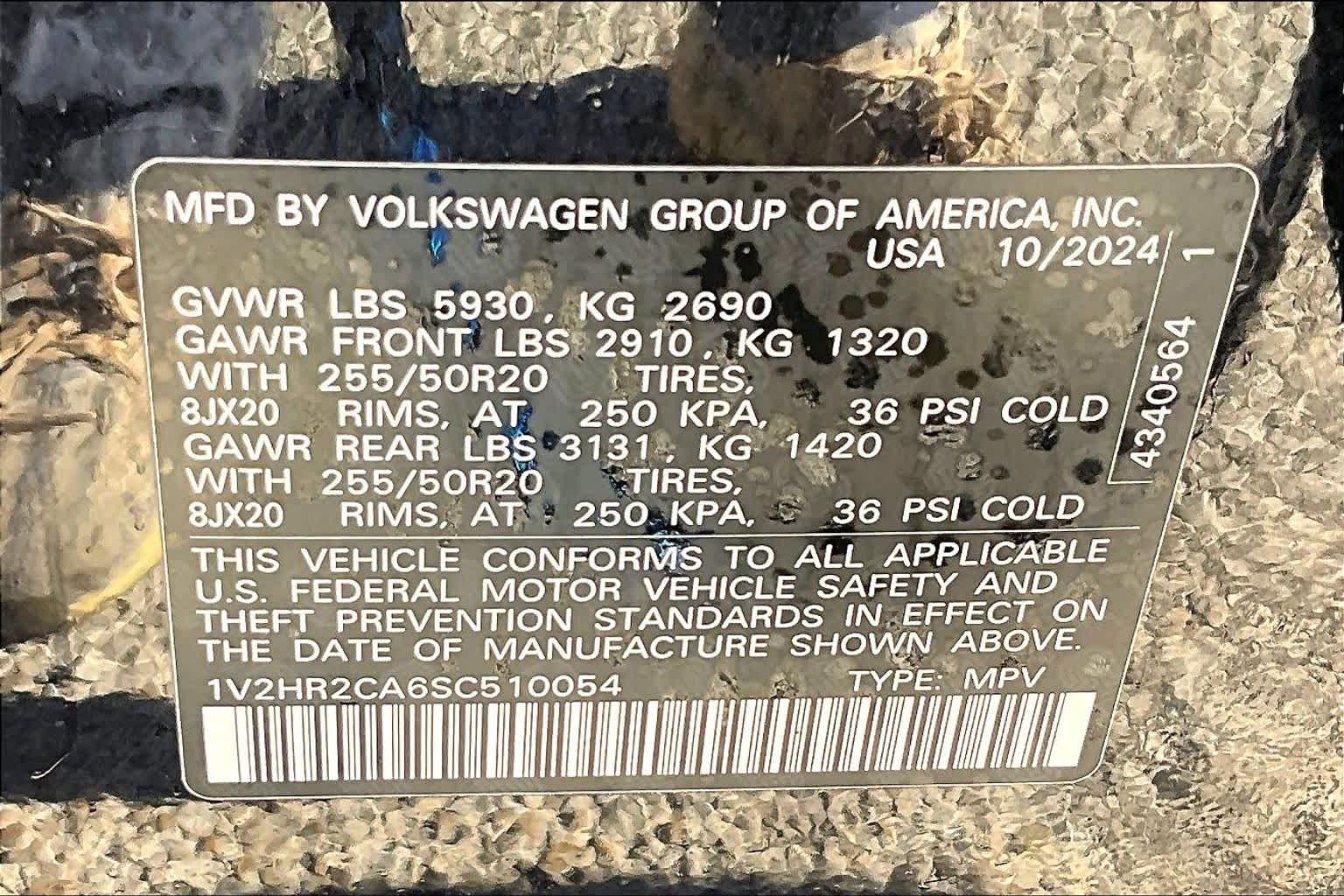 - VIN : 1V2HR2CA6SC510054